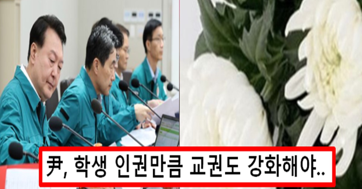 최근 서울 초등학교 교사 사망 사건의 심각성을 인지한 윤석열 대통령이 24일 학생 인권만큼이나 교권 보호를 강조했습니다. 이도운 대통령실 대변인에 따르면 윤 대통령은 이날 용산 대통령실 수석 비서관 회의를 주재한 자리에서 교권 강화를 위한 교육부 고시 제정과 자치조례 개정 추진을 지시했다고 합니다. 구체적인 제정 및 조례가 필요한 시점에 나온 지시라는 반응이 많지만 또 그냥 보여주기식이 되지 않을까 걱정이 많습니다..